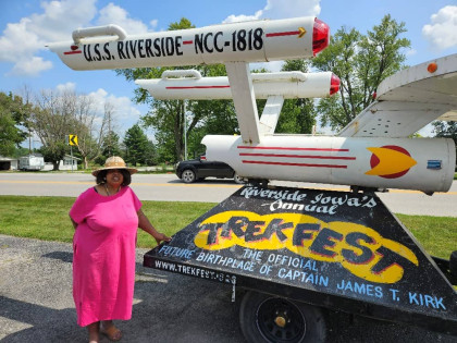 Did I mention that I’m a Trekker (okay, Trekkie, whatever)? I first started watching the original series in syndication in the early 1970s. In the early 1990s, I attended my first Star Trek convention in Tallahassee, Florida, while I was a grad student at Florida State University. While my personal collection of Trek mostly consists of books, my home office has its fair share of Trek memorabilia. Strangely, although it’s less than 80 miles away, I have previously visited Riverside, Iowa, only once before–for the 2009 TrekFest. It was their 25th anniversary celebration of the festival, and their special guests were George Takei, Nichelle Nichols, and Walter Koenig (who is, BTW, a Grinnell College alumnus). Unfortunately, I have no idea where the pictures I took, especially from the parade, are, but here’s more information at this TrekFest page. In case you are wondering how the small Iowa town became known…