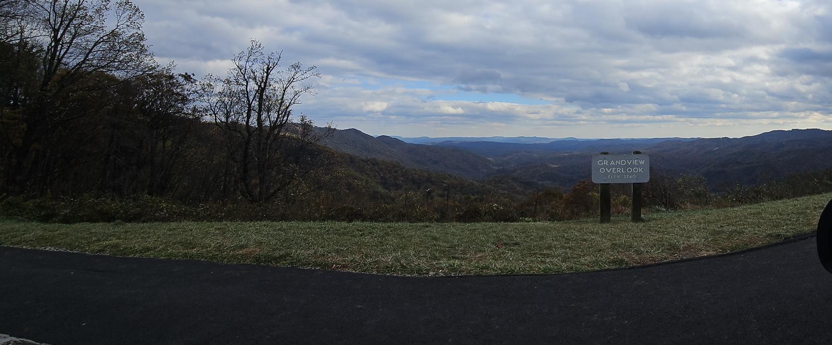 The parkway’s trees were clearly past their prime fall coloring and leaf coverage, but there was still plenty to see. Much of the drive through the remainder of the parkway was leisurely, and I stopped frequently to take pictures. Even though I didn’t leave SB throughout the scenic drive to take advantage of the various hiking trails, I was still satisfied with the sights I could see and photograph, including the Moses Cone Memorial Park, and this great view I captured as a panoramic photo: