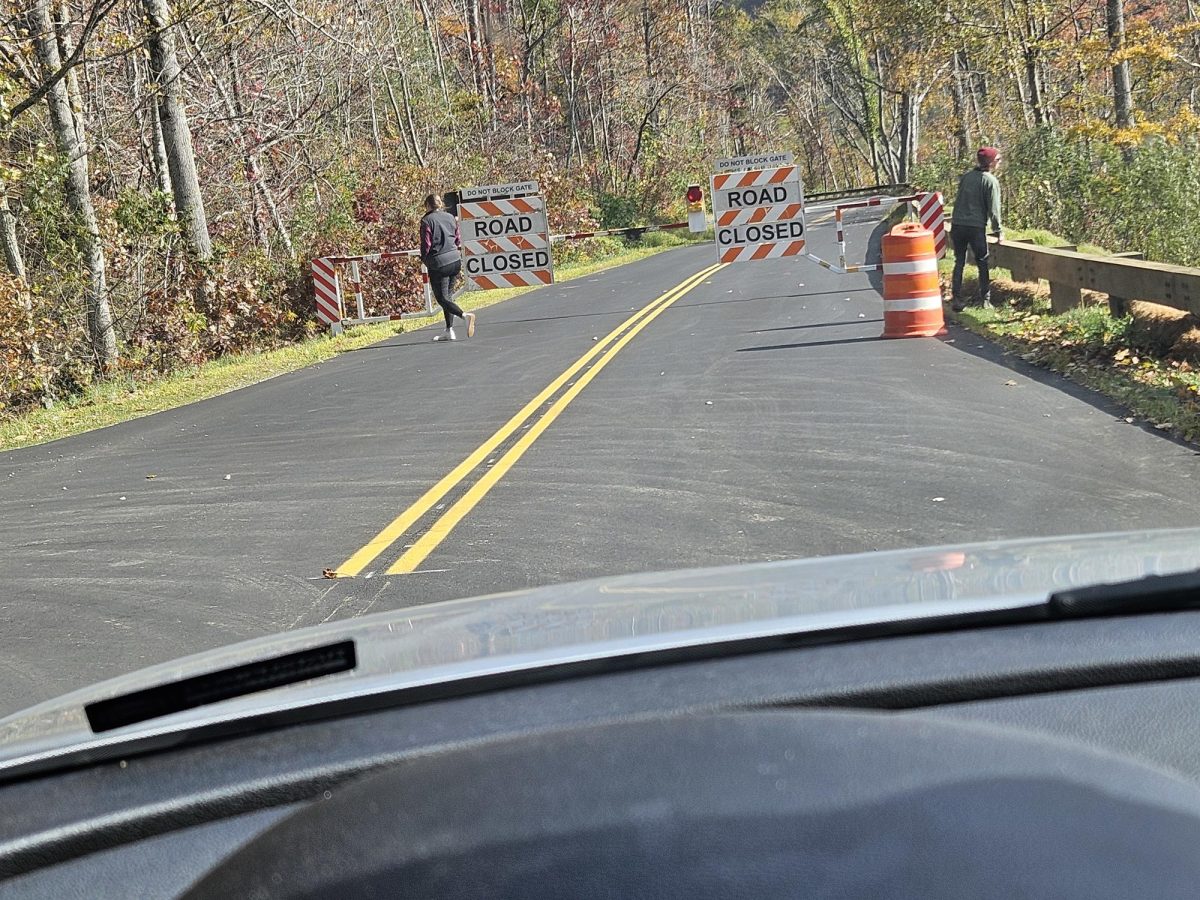 It wasn’t long before I reached the first road closure. Unfortunately, there was no reasonable chance my Shaka Guide audio tour could be up-to-date with the series of road closings and re-openings, and I had managed to leave the map the ranger had given me in SB’s back seat. Between Waze and my Rand McNally road atlas, I made a guess about a point where I might be able to successfully return to the parkway. My road angel must have been looking out for me again, because I actually managed to find a re-entry point, as I could see the closure gate from SB’s front passenger window!