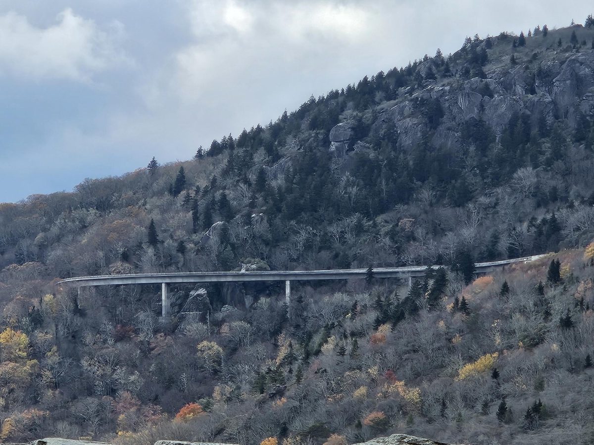 Fortunately, the Shaka Guide was able to detect my GPS position and began the audio tour from that point. Unfortunately, however, it looks like there is a pretty wide gap between where I had to leave the parkway and where I was able to find my way back. I was still able to enjoy the parkway, including the Linn Cove Viaduct. It’s an interesting feat of engineering and construction, but I couldn’t really get a picture of the entire bridge. There are several pictures along the way, then some taken from a distance to portray a sense of its scope.
