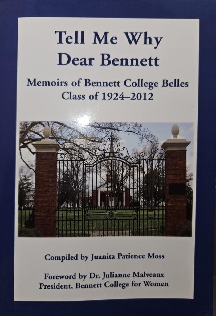 There was a post today on Facebook referencing a three-volume set entitled, Tell Me Why Dear Bennett, made up of series of memories by Bennett College alumnae compiled by Belle Juanita Patience Moss. When I saw the post, I was reminded that I had contributed to the memoir. Below, I’ve reprinted that excerpt: