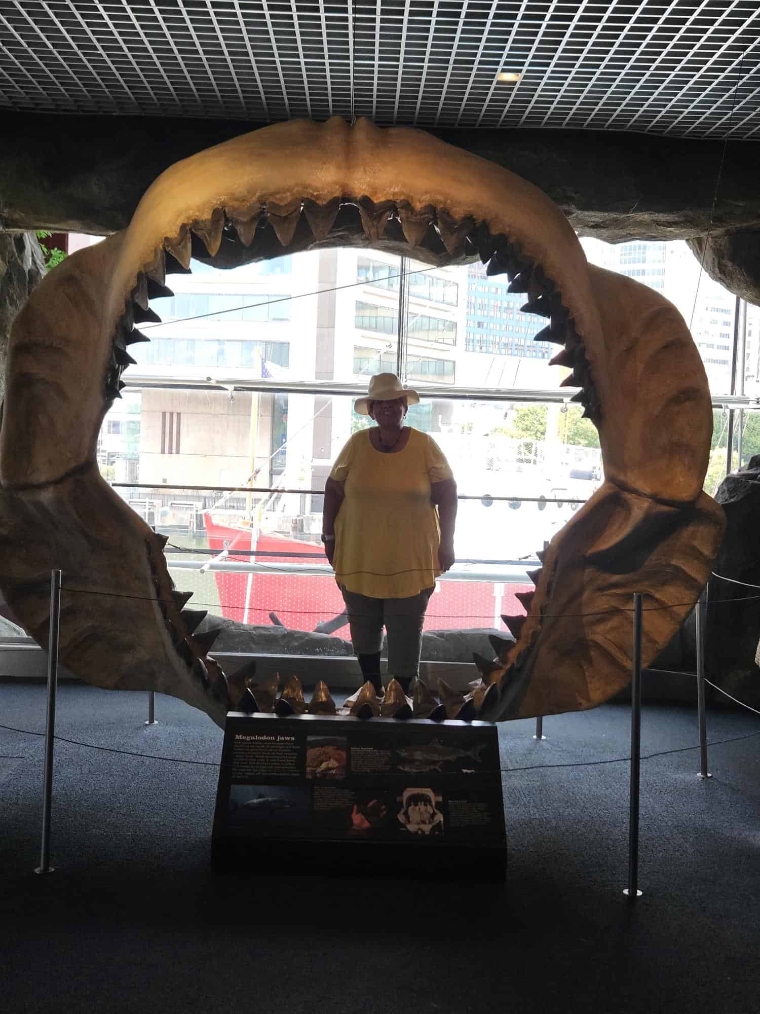 It’s hard to believe that more than a year has passed since my first visit to the aquarium, although I’ve been to the Inner Harbor at least twice since then, including a dinner cruise that started across from the aquarium. The familiar jaws are still there immediately after the first floor of exhibits, requiring me to get an updated picture.