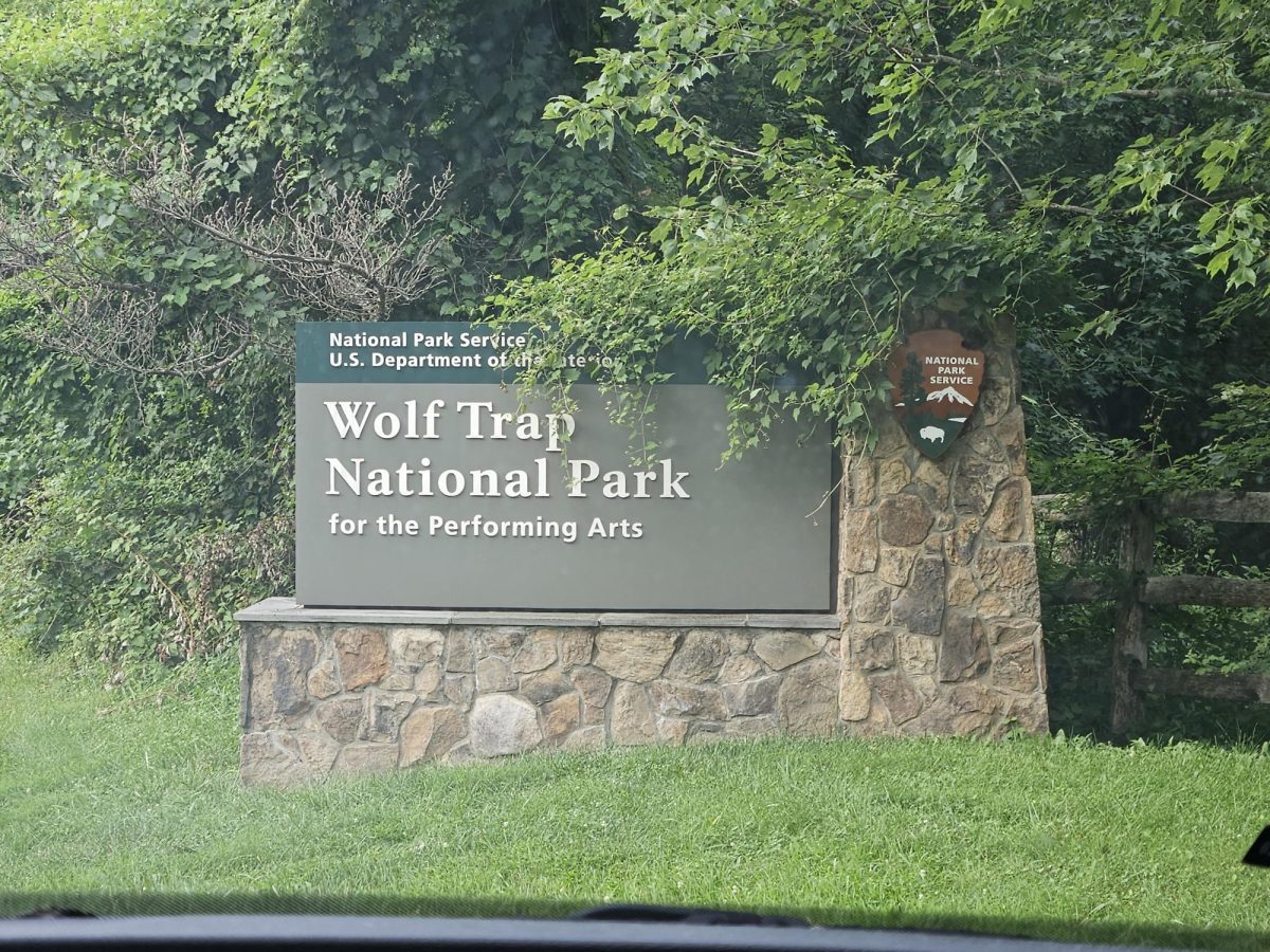 Anyway, back to the present. I didn’t realize that Wolf Trap was part of the National Park Service and automatically pull out my phone to snap a picture of the sign–a momentary thing with all the cars trying to get to the venue.There was an entire lot designated for handicap parking, but I still barely got one with all of the cars trying to secure a space. Additionally, the entry to the hall from that lot was an incredibly short walk. My only concerns, since the strong summer storm had ended in plenty of time to have no effect on the concert, were that I initially felt a long way from the stage and too close to the lawn sitters who took a while to quiet down. The sound guy made some adjustments in the system to handle the first, and I’ll get a seat closer to the stage next time to address the second.