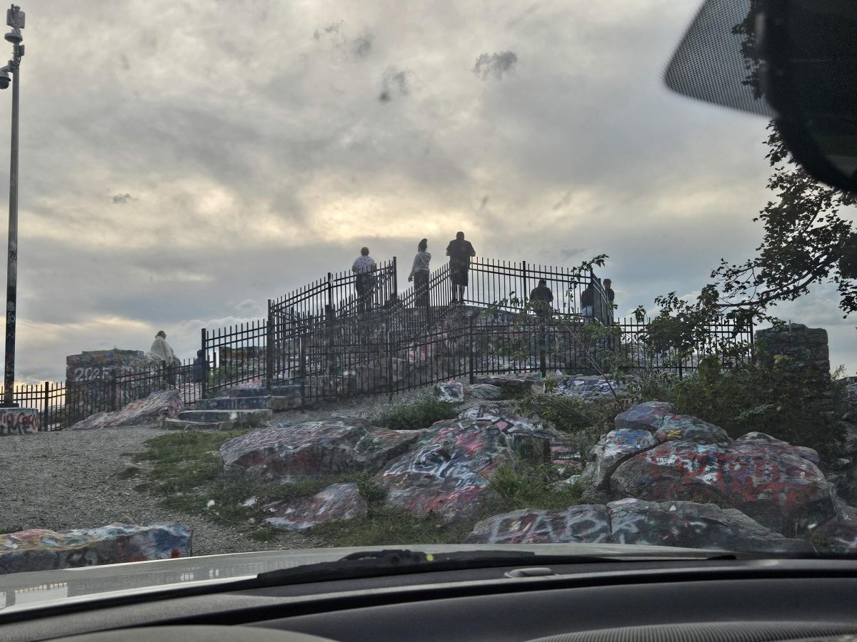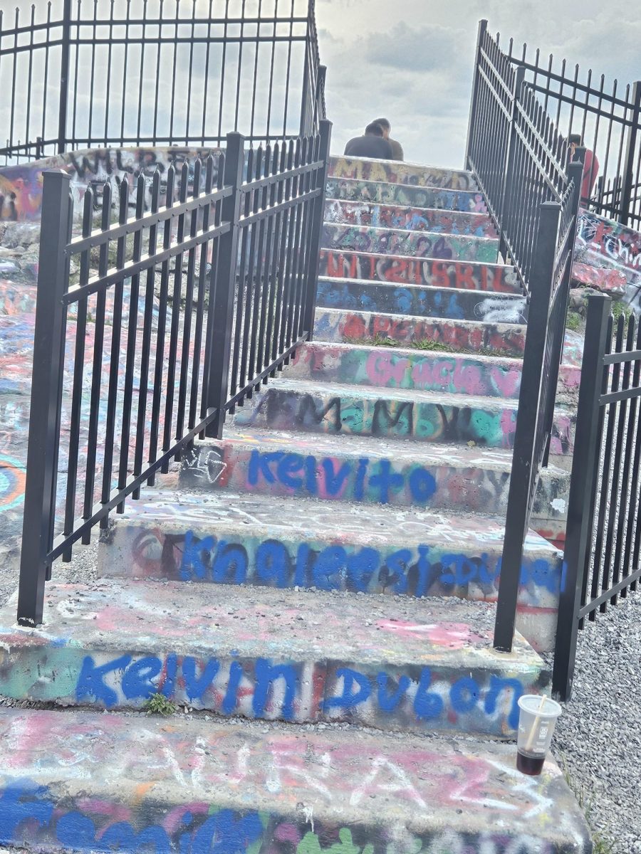 There were a lot of people in the area, many of whom had climbed to the top of the stairs to get a view of the valley below. I took several pictures of the graffiti while the sun was up, then I waited in SB until evening arrived. Unfortunately, even as 10 p.m. and the moment where the Moon was supposed to best display its waxing crescent, it was too cloudy to see. Reluctantly and admittedly disappointed, I returned to SB and headed home.