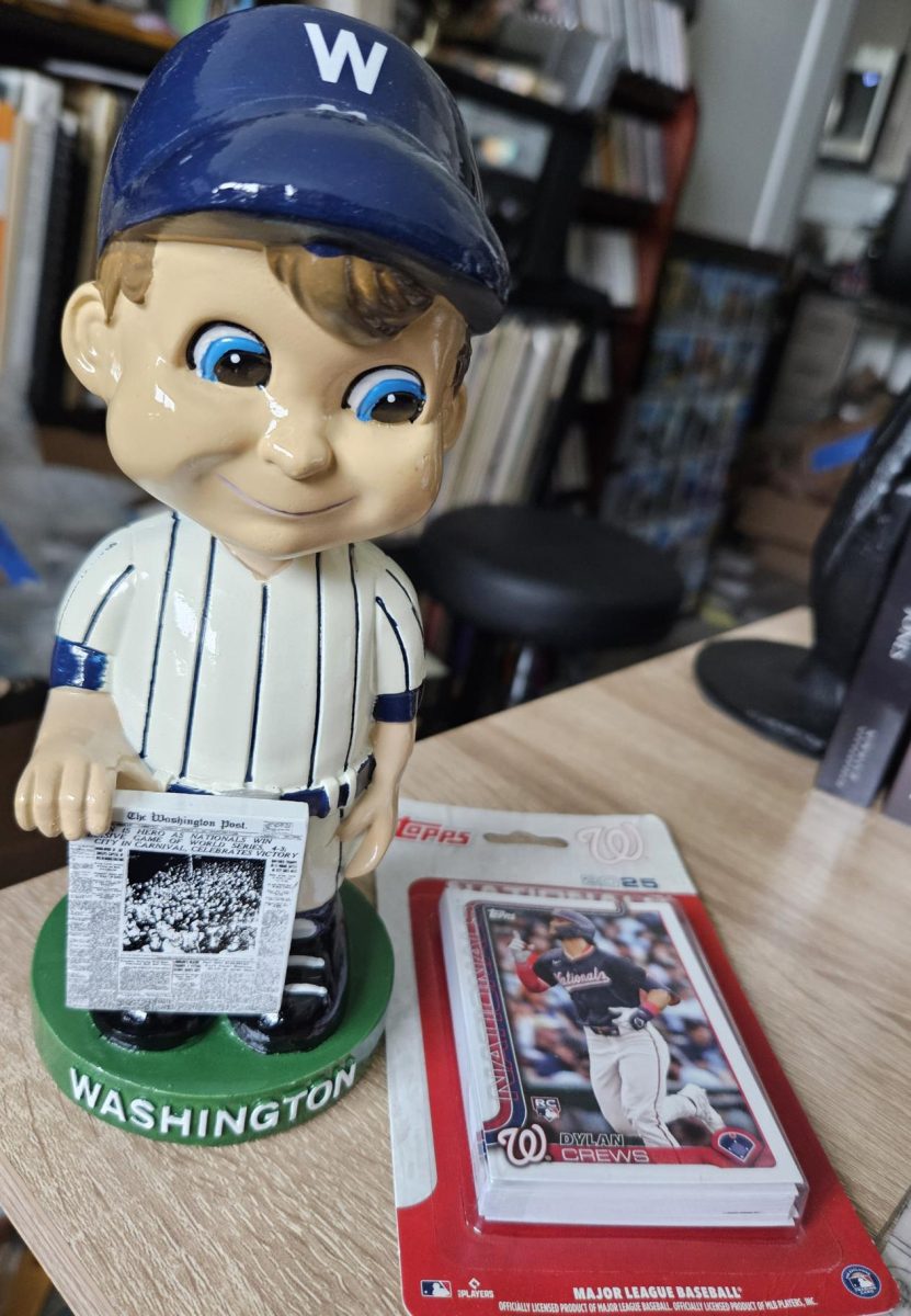 Taking advantage of $5 Tuesday, throughout the day I got a smoked sausage, a pretzel, fries, funnel cake, and a soda (funny how sweet the Coke tasted after avoiding soda for a few months). I also got some baseball cards as a souvenir, then later, a guy gave me a bobblehead commemorating the 1924 Washington Senators’ World Series win.