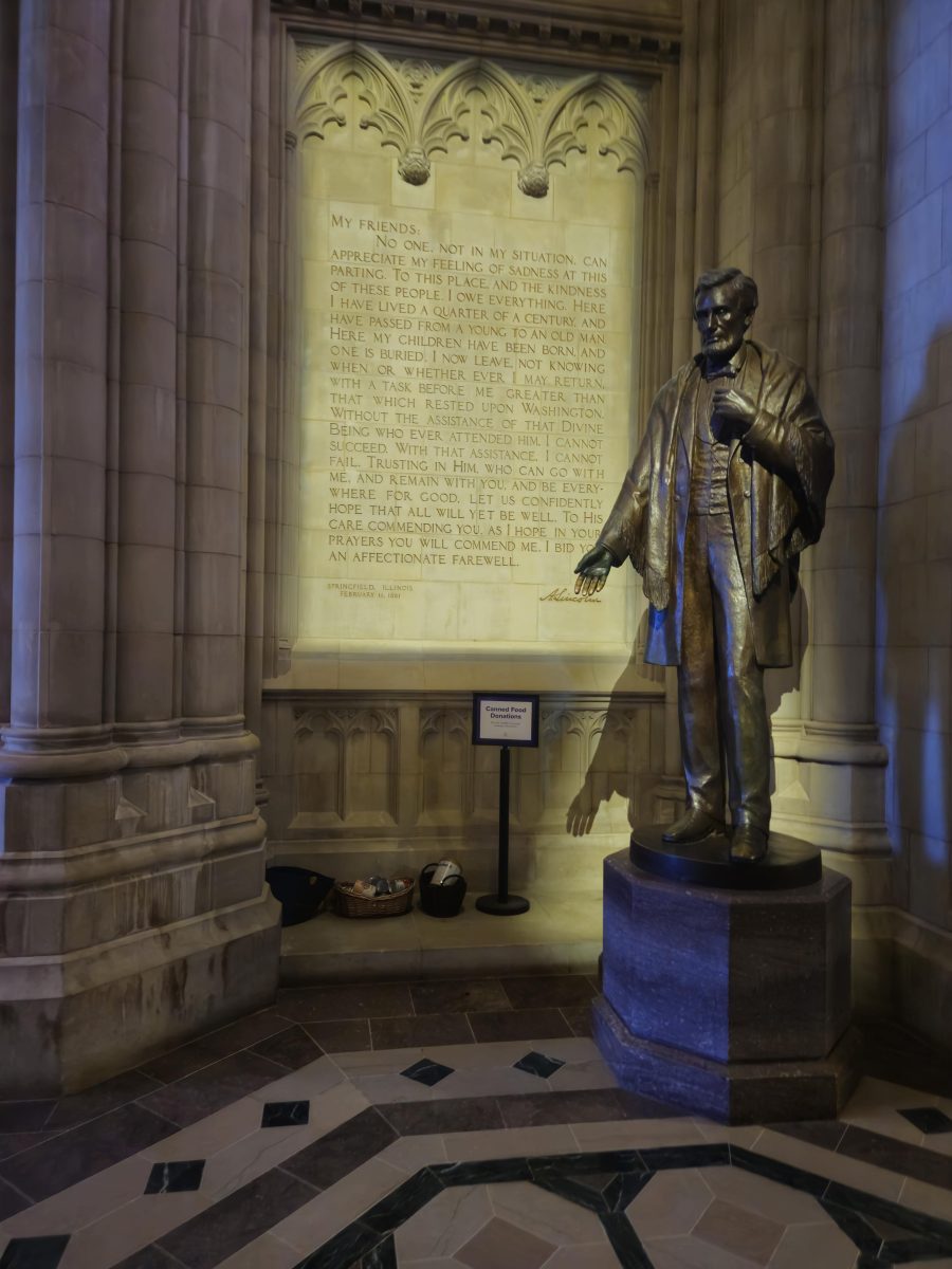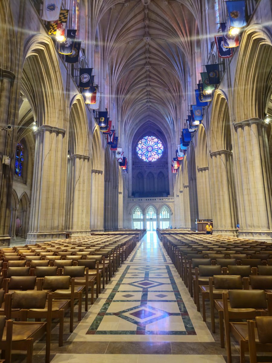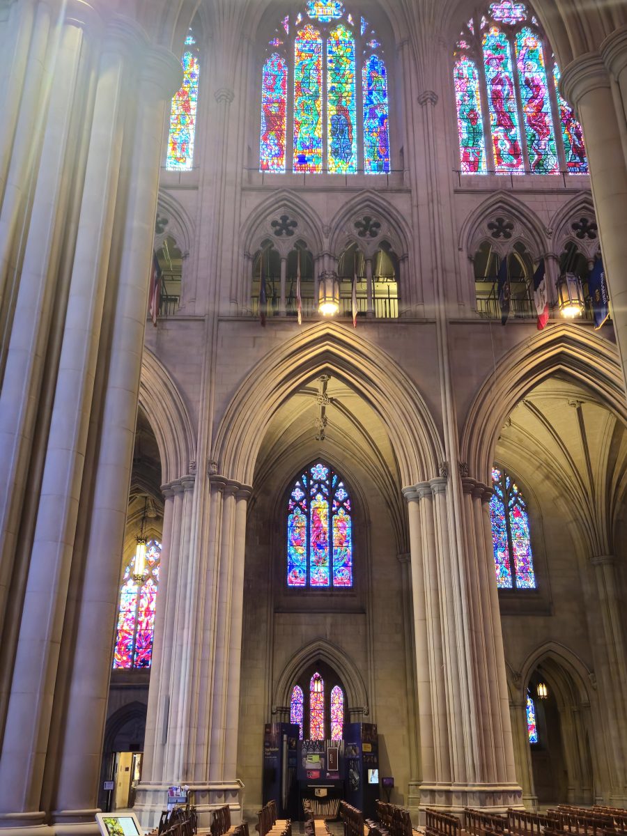 I had chosen to take their self-guided tour although that meant missing the information provided by the individual guides. I felt, though, that I could move about at my own leisure and give attention to the places I chose. Also, their Website provided extensive information, and I overheard a couple of different tour guides as they brought their groups close by. From one, in fact, I learned the cause of the extensive construction underway in the rear portions of the cathedral. Seems there was a rare, major earthquake in the Washington area on August 23, 2011. Nearly 15 years later, the work continues. I didn’t hear any information about a projected completion date.