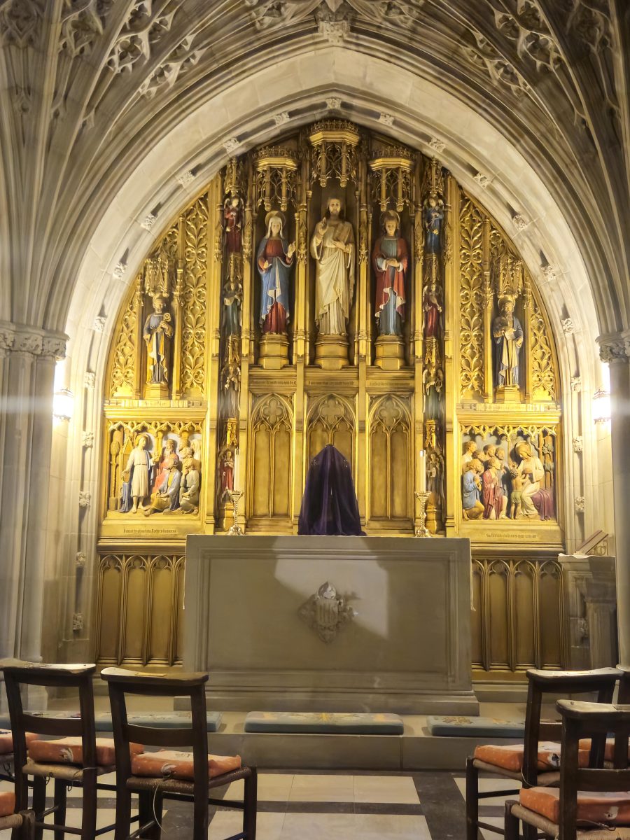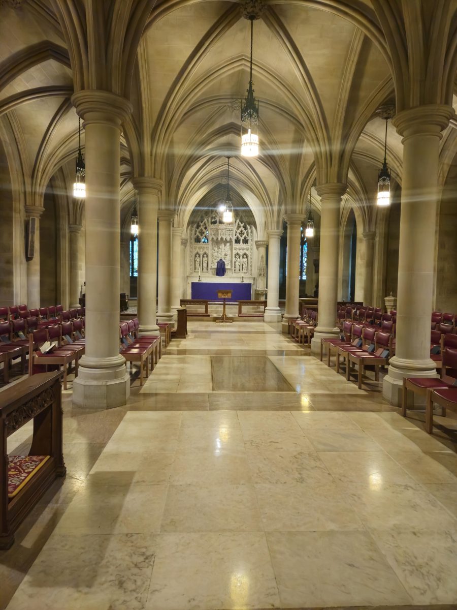 I entered the cathedral from their accessible doorway and quickly observed the enormous Sanctuary. Its beauty should have inspired some sacred, profound thought in me; instead, I instantly recall the scene from the 2000’s television series, The West Wing, where fictional president Josiah Bartlet crushed out a cigarette in anger.
