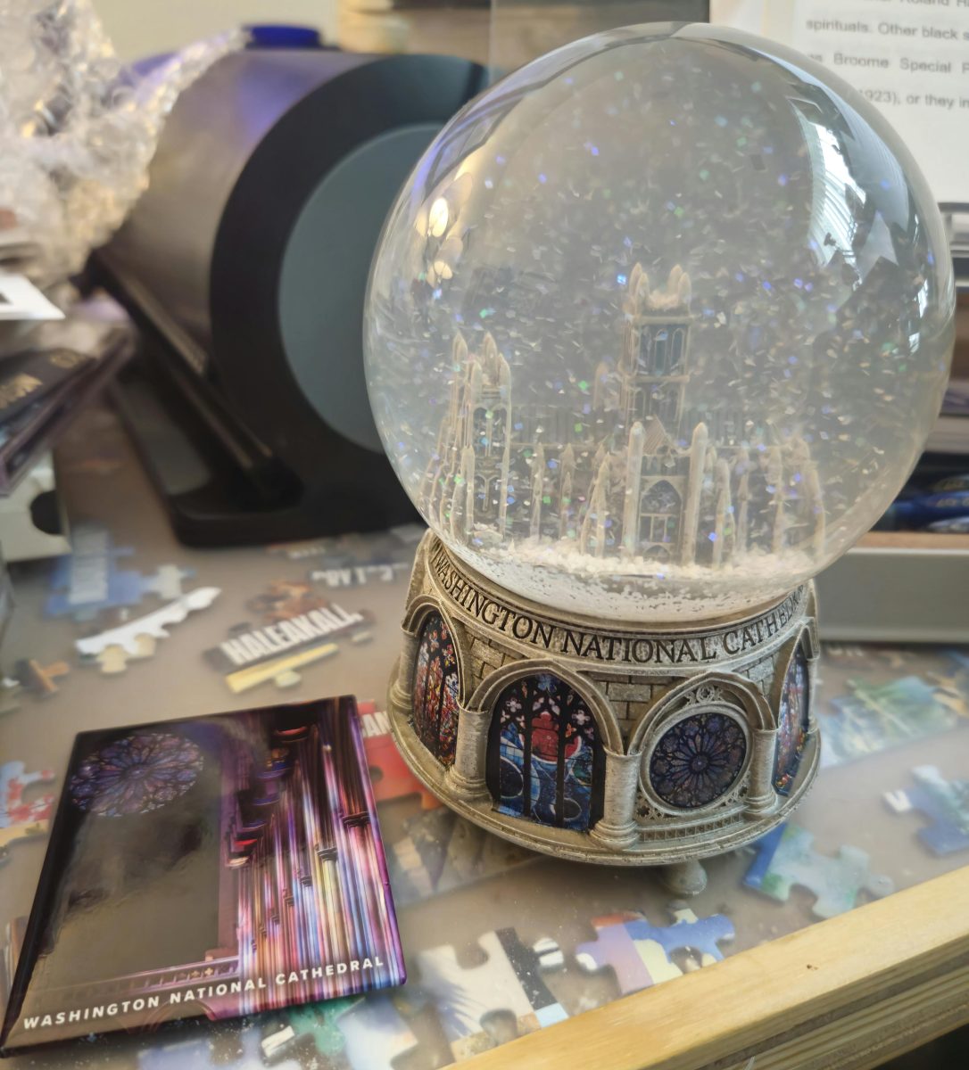 My next stop was the gift shop, where I purchased a snow globe and fridge magnet of the cathedral, then I later returned to view the Lego version of the building I’d missed the first time. I made my way slowly through the Sanctuary, taking pictures of the numerous stained glass windows and listening to a tour guide tell the story about one set that portrayed the Garden of Eden. While parts of the Sanctuary were closed to the public, I was able to get a couple of selfies there, including one with the large, circular stained glass window in the background, as well as the detailed masonry used in the creation of the pulpit and lectern.