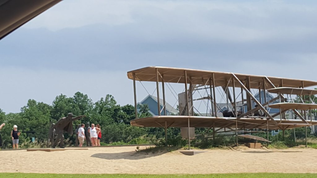 We made our way down the Carolina coast first to Kill Devil Hills and the : //www.nps.gov/wrbr/index.htm">Wright Brothers National Memorial , through Nags Head and finally down the Cape Hatteras Seashore to the Cape Hatteras Lighthouse. It was a beautiful but warm day, and neither Momma nor I were inclined to climb either structure. So, we drove around and took pictures of the parks.